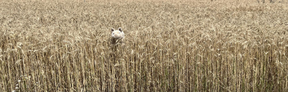 Schweinchen nehmen sich und uns Betrachter gern auf die bekannte Heugabel.
